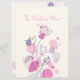 Menu de janto de recepção de casamento floral simples e de dois lados, estilo petal confetti, em tons bonito rosa, roxo, ameixa e marinho. Desenvolvido exclusivamente pela Sarah Trett.