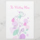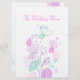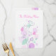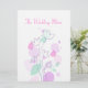Menu de janto de recepção de casamento floral simples e de dois lados, estilo petal confetti, em tons bonito, roxos, ameixas e aqua verdes. Desenvolvido exclusivamente pela Sarah Trett.