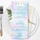 Painterly watercolor blending defines this modern wedding menu. Perfect for contemporary couples seeking unique, artistic stationery. Features curated pastel washes in soft blue, blush pink, and peach creating one-of-a-kind visual depth. Fluid gradients provide an elegant presentation for your reception dinner selections. Fully customizable for beautifully romantic celebrations. Ideal for design-conscious couples who appreciate artistic composition over traditional patterns. Coordinates perfectly with matching wedding invitation suite including invitations, place cards, table numbers, and guest books. Need customization help? Contact remidevandesigns@gmail.com RemideVan©.