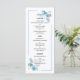This modern wedding menu featuring a subtle floral pattern in soft blue tones. The forget-me-not motif adds romantic charm and elegance. Blue accents create harmony with your wedding decor. The floral design pairs beautifully with garden-style receptions. Clean lines and a refined layout reflect a modern aesthetic. Perfect for couples who value style and thoughtful details.