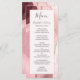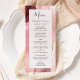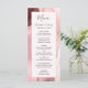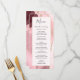 Este elegante e moderno menu de casamento mostra uma cor d'água cor rosa pincelada, aparada com brilho dourado. O texto aparece em letras elegantes de cinza de carvão vegetal e fontes de impressão em um retângulo de borda. O design de ágata é repetido no reverso.