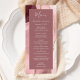 Este elegante e moderno menu de casamento mostra uma cor d'água cor rosa pincelada, aparada com brilho dourado. O texto personalizável combina letra manuscrita, copperplate e fontes itálicas em pálido pincel em um retângulo de rosa empoeirado profundo. O design de ágata é repetido no reverso.