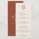 O moderno Boho Floral Terracotta Queimou o Menu de Casamento Laranja. Monograma atrás.