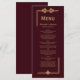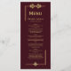 Um moderno cardápio de casamento burgundy com na moda dourado falso borda brilhante.