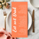 Menu Modern Coral Orange Eat and Drink Wedding