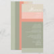 Uma escolha excelente para o seu casamento moderno de metrô. Este convite tem um layout simples de blocos de cor em lindas tonalidades de pêssego, coral e sábio. Um esboço floral branco sutil dá-lhe um toque romântico. Outras essências correspondentes estão disponíveis nesta suíte de casamento de na moda. Cada item é totalmente personalizável.