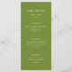 Modern Minimal Olive Green Custom Wedding Menu. A minimalistic and modern, dark olive green wedding menu card, designed with simplistic typography. Customize with bride and groom names, your wedding date, and your starters, entrées, and desserts.