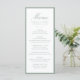 This wedding menu is styled with soft sage green calligraphy for the “Menu” heading, complemented by refined serif text for the names, date, and dining selections. The muted green border creates a calm, organic contrast against the white background, making it especially well-suited for botanical, garden, and romantic wedding themes. The airy color palette and structured layout provide a graceful way to present your reception menu while keeping the overall look light and elegant.