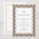 Matches bilingual Hispanic wedding themes and modern Mexican tile aesthetics.