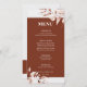 Menu de casamento | Fechos cônicos simples e BOHO, ramos delicados de folhas em tons de terra monocromática. Este é um simples convite botânico, com moderno apelo elegante rústico. Parte de uma coleção de papelaria de casamento com acessórios de casamento. ©WhimsicalArtwork™ criado para o BarefootBride™