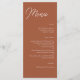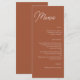 Este cardápio de casamento outono laranja queimado é perfeito para um casamento de estilo boêmio. Esta paleta de cores tendenciosas é perfeita para um casamento no final do verão ou no outono. Faça deste menu o seu próprio incluindo todos os detalhes do menu de recepção de casamento. Precisa do seu menu como um download digital? Encontre-o aqui: https://www.zazzle.com/modern_digital_template_terracotta_wedding_menu-256791473298079858