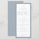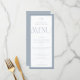 Set the tone for your wedding celebration with this modern yet classic menu, presented in a sophisticated dusty blue. The elegant serif typography and the prominent couple's monogram create a refined and personalized feel for your special day. This menu is designed to elegantly list your culinary offerings, from delightful starters to decadent desserts, providing a seamless experience for your guests. Its clean lines and understated design ensure it will be a beautiful addition to any reception table setting.