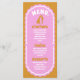 Nosso cartão de cardápio de casamento com estilo retrógrado mínimo e ousado é perfeito para o casal da moda que ama se destacar e fazer uma declaração ousada. Nosso design apresenta uma combinação de cor rosa brilhante e amarela. Um simples arco de onda abstrato e formas de círculo criam uma aparência em negrito com o "menu" exibido ousadamente em letras grandes brancas. O verso apresenta um monograma em negrito