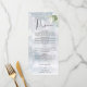 Este menu de casamento de inverno com folhas de vegetação botânica elegante pode ser personalizado com suas informações em tipografia chic com suas iniciais monograma no verso. Projetado por Thisisnotme©