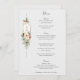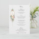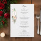 Este lindo cardápio botânico de inverno apresenta buquês de marfim e flores, groselhas vermelhas, flocos de neve de abeto e ouro em volta de uma elegante etiqueta de ouro para seu monograma em um fundo de cinza de pérolas pálidas. Inclui campos de texto editáveis para suas opções de menu, bem como um gráfico floral complementar no verso.