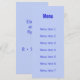 Este cartão de menu do Modern Monograma azul pode ser personalizado com o seu menu de casamento. No verso, o cartão apresenta o nome do casal e a data do casamento. Para o formato de data europeu, basta mudar o mês e o dia ao preencher os campos de data no modelo.