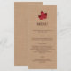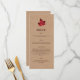 Em um fundo colorido de burlap, uma folha de mapa vermelha subtilmente monificada destaca esse menu.
