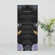 A bold and sophisticated Wedding Menu featuring dramatic dusty blue and grey floral illustrations against a stark black background. The crisp white typography and classic layout set an elegant, moody tone. Perfect for a formal evening or a sophisticated wedding.