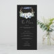Moon Crystals Flores Boho Metafísico Menu Casamento com fundo preto. Este convite de casamento Boho apresenta fases de crista e lua de cheio com flores brancas e azuis, pontos de aglomerado de cristal de ouro, verde e galhadas. Uma escolha perfeita para uma união espiritual mística ou metafísica, para um punho ou casamento. As cores e fontes de fundo podem ser facilmente alteradas para corresponder às suas necessidades.