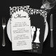 Celebrate your love with this beautiful black and white wedding menu. Designed with an elegant wedding dress and tuxedo under a floral wedding arch, this menu the perfect stationary for rehearsal dinners or wedding receptions. Add the bride and groom's event details for a personalized touch.