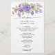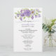 Sonhos roxos na moda florais de casamento. Menu de recepção desenhado com flores de aquarela pintadas à mão bonito em roxo e lilás. Totalmente personalizável. Para personalização mais avançada do design, selecione o botão "Clique para personalizar mais" na parte inferior da lista "Personalizar". Cheio de itens disponíveis.