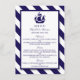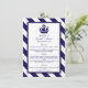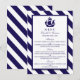 Estes cartões são perfeitos para qualquer casal planejando um casamento romântico perto do mar. O design apresenta um movimento branco de navio azul marinho num marinho náutico e fundo listrado branco. O design simples pode ser personalizado para se adequar ao seu evento especial e será o menu perfeito para qualquer festa temática de praia náutica, incluindo chás de panela, noivados, chás de casamento, festas de aniversário e muito, muito mais.
