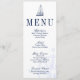 Cartões de menu de mesa com estilo náutico único. Um item de excelente a ser usado para uma festa de noivado, chá de panela ou recepção. Ele apresenta uma ilustração de veleiro estilo vintage com um rosa de bússola esmaecido no fundo. Todos os elementos deste item são ajustáveis simplesmente usam a função de personalização.