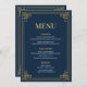 Menu Navy Gold Art Deco 80th Birthday Dinner Party