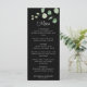 Este clássico menu de casamento preto eucalipto minimalista é perfeito para elogiar um casamento rústico. A design apresenta uma bela fonte de caligrafia e uma aquarela verde eucalipto em fundo preto.