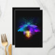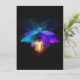 Voz mecânica, antiga, com lâmpada e asas finas brilha cor de laranja, roxo, turquesa sobre fundo preto. Estilo Steampunk.
