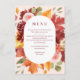 Cartão de Menu de Casamento com Número de Mesa com tons burguentos e delicados botânicos de outono, este design combina encanto rústico com elegância romântica. Perfeito para os casamentos do outono, dá o tom para uma comemoração corajosa envolta no calor e no estilo do eterno da natureza.