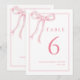 Cartões de Número de Mesa Coquete Fofinha com Laço Rosa