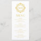 Ornamentado Floral Monograma Elegante Dourado de Casamento apresenta suas iniciais personalizadas em monogramas elegantes, cercadas por um quadro floral ornamental e uma camada de texto personalizada. Adicione um pouco de estilo e sofisticação à sua experiência de jantar de casamento com estes menus refinados. Criado pelo Evco Studio www.zazzle.com/store/evcostudio