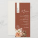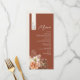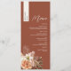 Traga a elegância aconchegante do outono para a mesa de seu casamento com este cardápio de casamento personalizado em terracota, apresentando o nome de cada convidado em uma faixa vertical creme. O fundo rico em ferrugem define o tom para uma celebração de outono, enquanto flores em tons suaves de rosa, pêssego e marfim com folhagens secas adicionam um toque de romance rústico. Um layout limpo com fontes elegantes e serifadas torna este cardápio ideal para casamentos boho, terrosos ou ao ar livre. Totalmente personalizável com os detalhes da sua refeição e lista de convidados, é tanto uma marca de lugar elegante quanto um souvenir significativo.