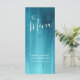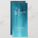 Bonita tonalidade formando do aqua pintada menu de janto de casamento ou pacote de cartolina de menu de evento especial. Edite este menu de 4 cursos com suas próprias palavras. Simples, mas moderno, menu de lavagem moderno do aqua. Ideal para casamentos de chá aqua ou eventos temáticos de arte. Também está disponível no estoque de cartão mais grosso e faz parte da coleção de casamento de abstratos de chá aqua. © Design e pintura original de Sarah Trett. www.sarahtrett.com para www.mylittleedenweddings.com no zazzle.