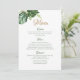 Palma Verde De Cores Aquáticas Tropicais Deixa Carteira De Menu De Casamento De Arte. Casar é bom, mas comer e beber é ainda melhor. Elevem seu espaço de jantar e sua capa de mesa com um menu atencioso que certamente se deliciará
