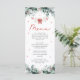 O Menu Chá de fraldas do Bebê de Natal dos Papais noeis Vermelhos é uma adição festiva e elegante ao seu chá de fraldas de Natal. Apresentando um design vermelho alegre com adoráveis Papais noeis roupas de bebê, este menu mostra lindamente suas opções de comida e bebida enquanto complementa a decoração do seu evento. Perfeito por adicionar um toque elegante e coeso, traz encanto de feriado para sua celebração. 🎅 🎄 ✨ 🍽️