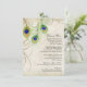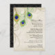 PALETA DE CORES: Preto, bege, creme, dourado, azul, verde e roxo. COLEÇÃO DE DESENHOS: Cartão de menu de jantar ou evento formal correspondente. Esta é parte de Conjuntos de Convites de Casamento de produtos correspondentes completos. Estes Convites de Casamento de Penas de Pavão modernos e contemporâneos são modernos, elegantes e sofisticados. A arte é de uma pintura original à aquarela feita à mão por Audrey Jeanne Roberts. Há um fundo de renda texturizada, manchada de chá, envelhecida, estilizada, penas de pavão modernas e uma borda lateral de cor correspondente. No verso está o texto do convite de casamento personalizado, um conjunto de penas de pavão com floreios de rolos desenhados à mão em bege e um padrão damasco sutil com desenho de linha caligr