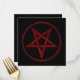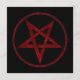 Pentagrama vermelho, invertido, texturizado em círculo, sobre fundo preto. Símbolo oculto. 666