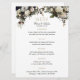 Texto editável menu de recepção monograma de casamento com lindas flores brancas e marfim e buquês verdes com folhagem sazonal, ramos, pinecones e folhas. +++++++++++++++++ Ideal para os seus casamentos botânicos no inverno. +++++++++ Para itens de casamento coordenados, veja a coleção inteira sob a imagem principal.