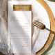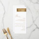 Por que gastar cartões de lugar e cartões de menu quando você pode ter um menu elegante All-in-one personalizado com o nome de cada convidado? Design contemporâneo, simples e elegante com bela faixa de ouro com nome de convidado na caligrafia moderna escrita manual em branco e o resto do menu com texto em tons de ouro. NOTA: adicione um nome de convidado a cada menu, adicione o menu ao carrinho de compro; depois volte ao menu, adicione um segundo nome de convidado e adicione o menu ao carrinho de compro...continue com este processo com todos os nomes de convidados na sua lista. Para primeiros nomes de convidado curtos, adicione com a barra de espaço do teclado alguns "espaços" vazios antes do nome para centralizar o nome.