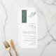 Por que gastar cartões no lugar e cartões de menu quando você pode ter um menu elegante All-in-one personalizado com o nome de cada convidado? Design contemporâneo, simples e elegante com uma bela caligrafia manuscrita moderna. A faixa no canto superior esquerdo está em um tom verde profundo com o nome do convidado em branco. NOTA: não há downloads de listas de convidados disponíveis no Zazzle, portanto, uma ordem individual deve ser colocada para cada menu de nome de convidado. Preencha o modelo com todos os detalhes, incluindo o seu primeiro nome de convidado. Quando estiver satisfeito com a aparência do seu menu, adicione-o ao seu carrinho de compro. Volte para o design e adicione o nome do seu segundo convidado e adicione ao carrinho de compro. Volte, adicione um terceiro nome de convidado e repita o mesmo processo até que todos os menus de nome de convidado estejam concluídos. Por último, passe ao pagamento. Para primeiros nomes de convidados curtos, adicione com sua barra de espaço do teclado alguns "espaços" vazios antes do nome ao centro. O design também está disponível com uma faixa de convidado em azul. Parte da nossa Coleção "Casamento Verde da Tipografia Elegante Moderna" com vários produtos de coordenação disponíveis. Visite a coleção inteira aqui: https://www.zazzle.com/collections/modern_elegant_typography_green_wedding-119450360134999957