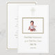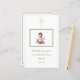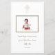 Celebre a Primeira Comunhão do seu filho com este menu elegante e personalizável. A design apresenta uma cruz realçada em ouro no topo, simbolizando a fé, e uma foto central com o enquadramento da sua pequena, fazer o cartão verdadeiramente pessoal. O fundo branco e o refinado texto dourado emprestam um aspecto limpo e sofisticado, enquanto a mistura de scripts e fontes serif adiciona um toque clássico. Perfeito por criar uma lembrança carinhosa dessa ocasião especial. B004