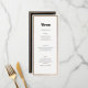 O texto limpo e elegante é facilmente personalizado neste menu de eventos de formato vertical e fino. O preto e o branco é sofisticado, emparelhado com uma falso brilho dourado. Para um toque pessoal extra, adicione sua foto de noivado ou texto personalizado favorito no verso usando a opção "personalizar mais".