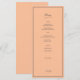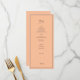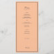 Pêche é um fundo laranja claro para design simples, mas elegante, baseado em tipografia. rodapé do monograma do casal. Cinza em pêssego fuzz (pêche), texto e fronteira. Inverte para cor laranja clara sólida. A placa de menu tem fontes variadas e o embelezamento da linha do solteiro em "Menu".
