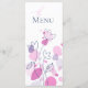 Pétalas de flores de confete modernas para menus de jantar de casamento ou formal. Menu de jantar duplo lado simples com arte linear moderna de flor com estilo de confete de pétalas rosa, roxo e azul escuro. Desenhado e projetado exclusivamente por Sarah Trett para www.mylittleedenweddings.com
