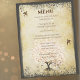 Whimsical Magical Tree of Love Pink Heart Leaf Tree on Tea Stainha Warm Silver Toned Metallic Paper com uma Sobreposição de Música de Folha Antica e algumas designs giras para melhorar as raízes do amor neste único convite de casamento da floresta...