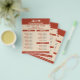 Um panfleto em tons castanhos e beges vermelhos com menu e lista de preços para pizzaria, restaurante, caminhão de comida, comida de entrega de casa ou chefe de cozinhar, ilustrado com uma fatia de pizza, um chapéu de chef e um prédio. Você pode distribuí-los aos seus clientes ou em caixas de correio. Os textos são totalmente personalizáveis!