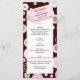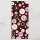 Padrões de bolinhas e círculos se formam em rosa, marrom e verde neste cartão de menu de coordenação para um chá de fraldas. Todo texto é facilmente personalizado.