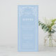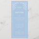 Delicado floresce branco entrelaçando para criar um belo quadro floral, abraçando a elegância eterno do amor. Esse belo cardápio de casamento captura a essência da estética moderna e do romance clássico com sua mistura harmoniosa de delicadas flores e tipografia elegante. Contra um pano de fundo cativante de azul empoeirado sólido, este menu põe a palco de uma celebração verdadeiramente encantadora do amor.